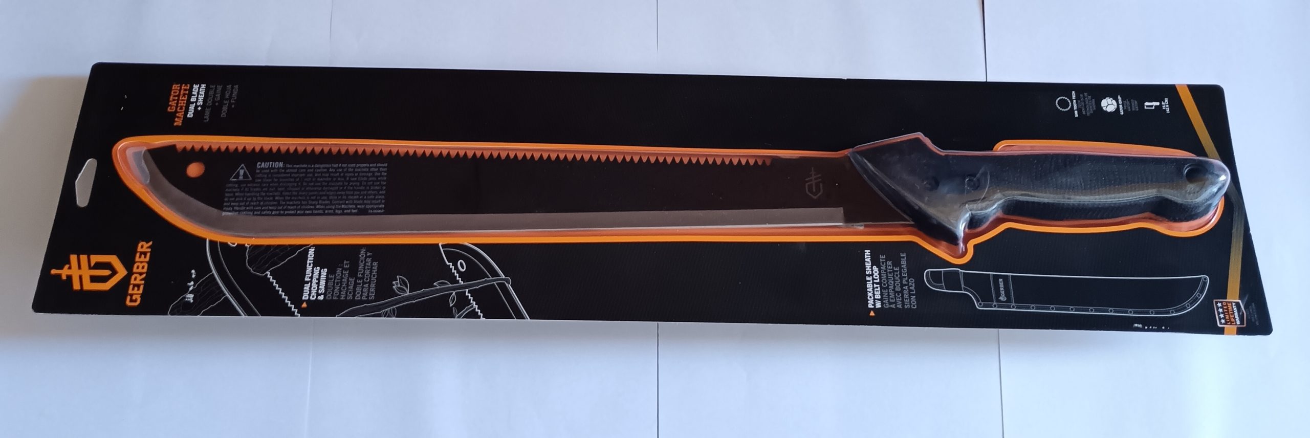 Gerber Gator: 46 cm penge hosszával a megfelelő szerszám minden kültéri és túlélő tevékenységhez. A bozótvágó kés acélpengéje korrózió és zavaró fényvisszaverődés ellen a fekete felületénél fogva védett. A penge hátoldalán erős fűrészfogazás található. Gumírozott markolattal. Szállításunk tartalmát képezi egy stabil nylon tok is.